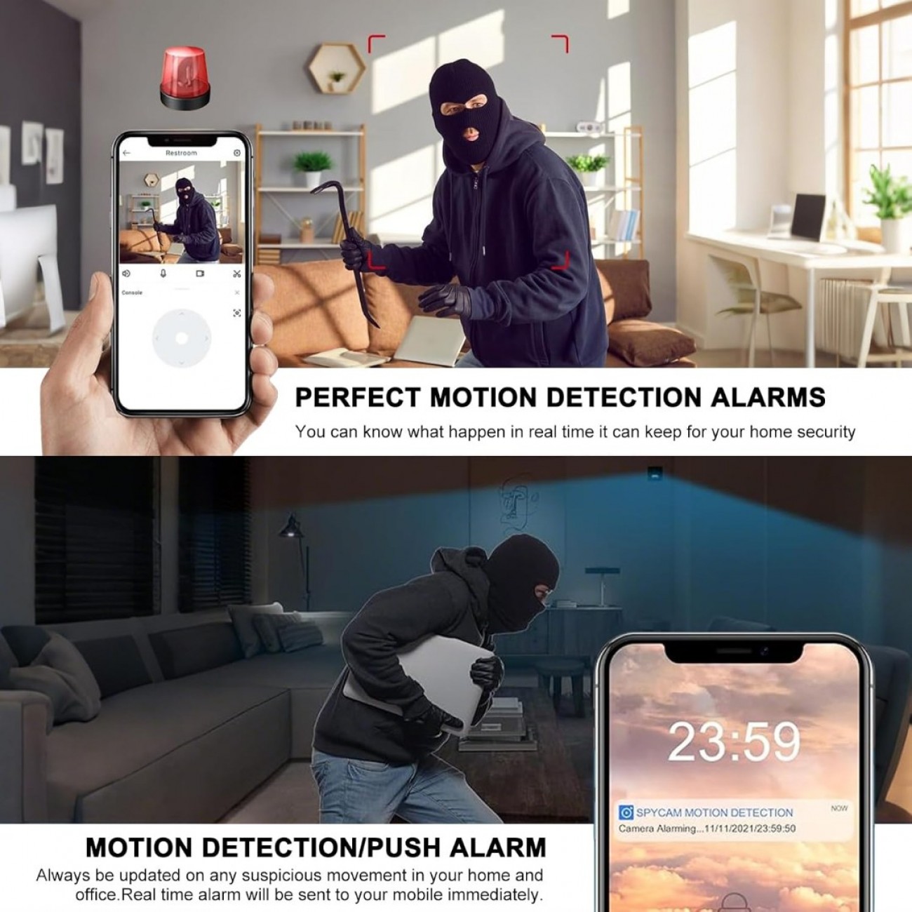 【Motion Detection Alerts & Instant Alerts】: The mini camera's Motion Detection feature identifies changes in a scene by comparing differences between consecutive frames, and when enough changes are detected, the mini cameras for home security will starts working and pushes you a notification as soon as possible and also supports motion tracking function, which will track the movement of your pet/dog/cat and baby for non-stop monitoring. even when you're away from home.ensuring that you don't miss a critical moment. This means there is no need to waste time viewing long periods of inactive video, thus increasing the working efficiency of the camera.