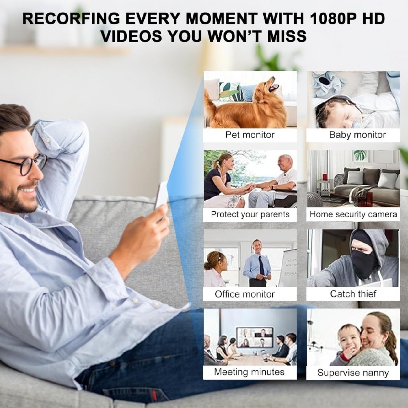 【Compact Design】: The mini WiFi camera is easy to conceal in any room. Its small size allows for discreet surveillance in any environment, making it perfect as a baby monitor, pet camera, or security camera for home, office, car, or store and Ideal for covert home or pet camera setups.